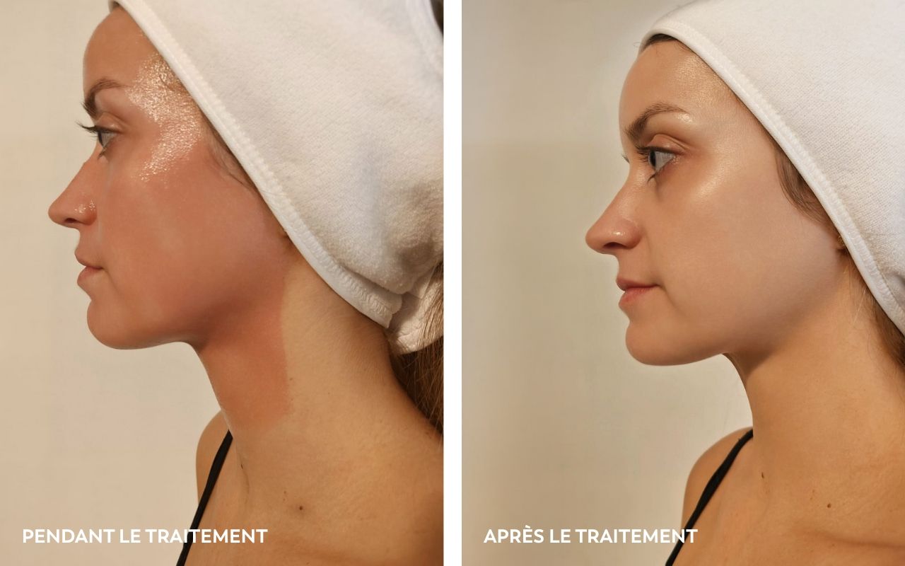 Pendant le traitement, des rougeurs et une sensation peuvent apparaître. Cela dépend de la sensibilité de la peau.
