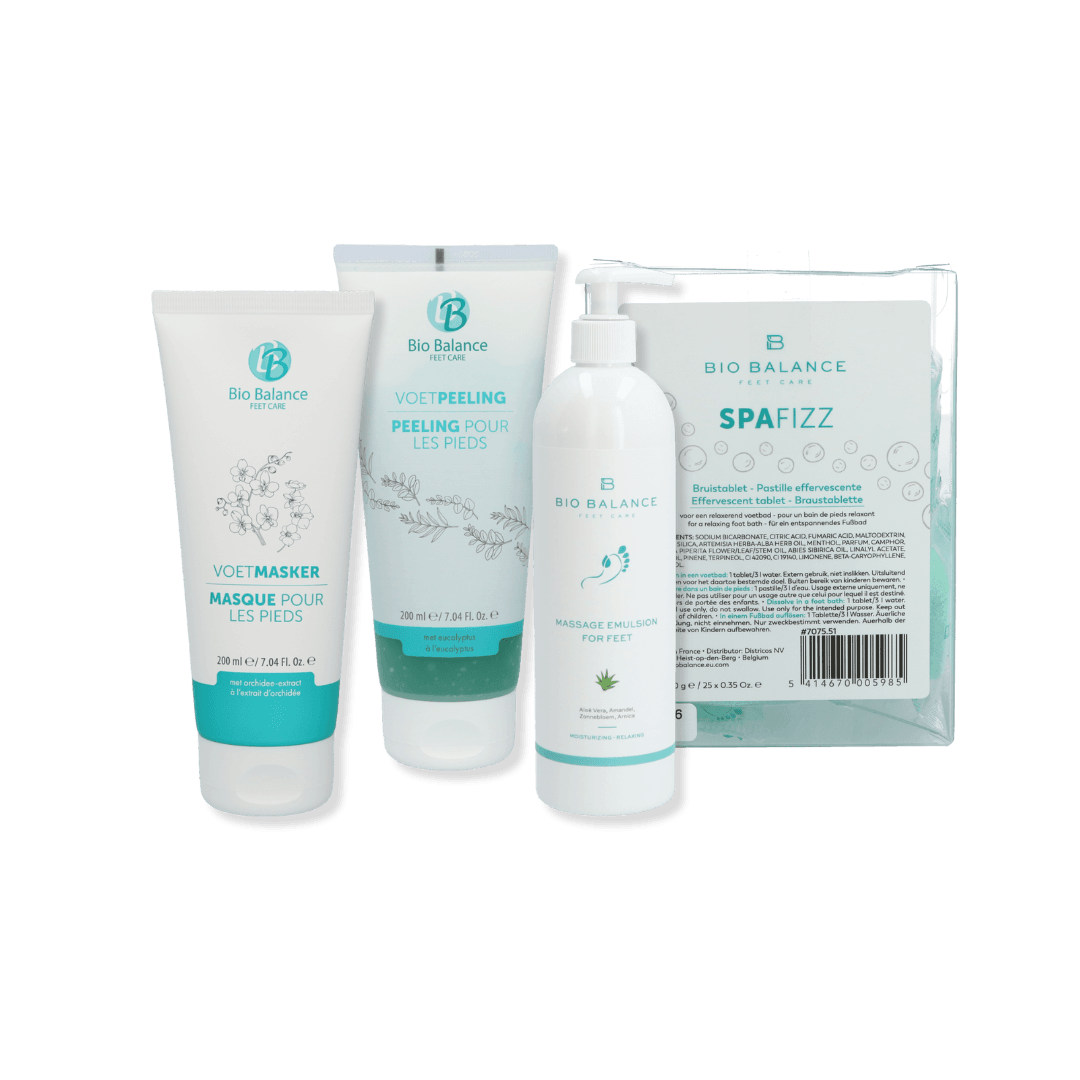 Bio Balance Feet, ce sont 2 lignes de soins complètes pour les pieds. D'une ligne de soins cosmétiques pour les pieds, axée principalement sur le bien-être et la douceur (la ligne Feet Care), à une ligne intensive, spécifiquement axée sur certains problèmes et types de peau. De cette façon, en tant que professionnel des pieds, vous offrez une solution sur mesure. Douce quand c'est possible, tranchant quand c'est nécessaire.