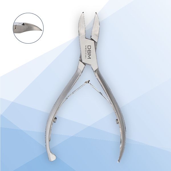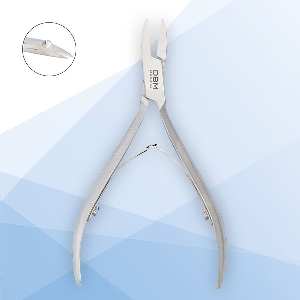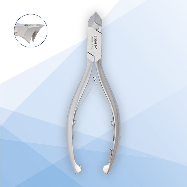 Pince ergonomique à tête fine pour retirer les ongles incarnés. Idéale pour les travaux de précision au niveau du bord de l'ongle.