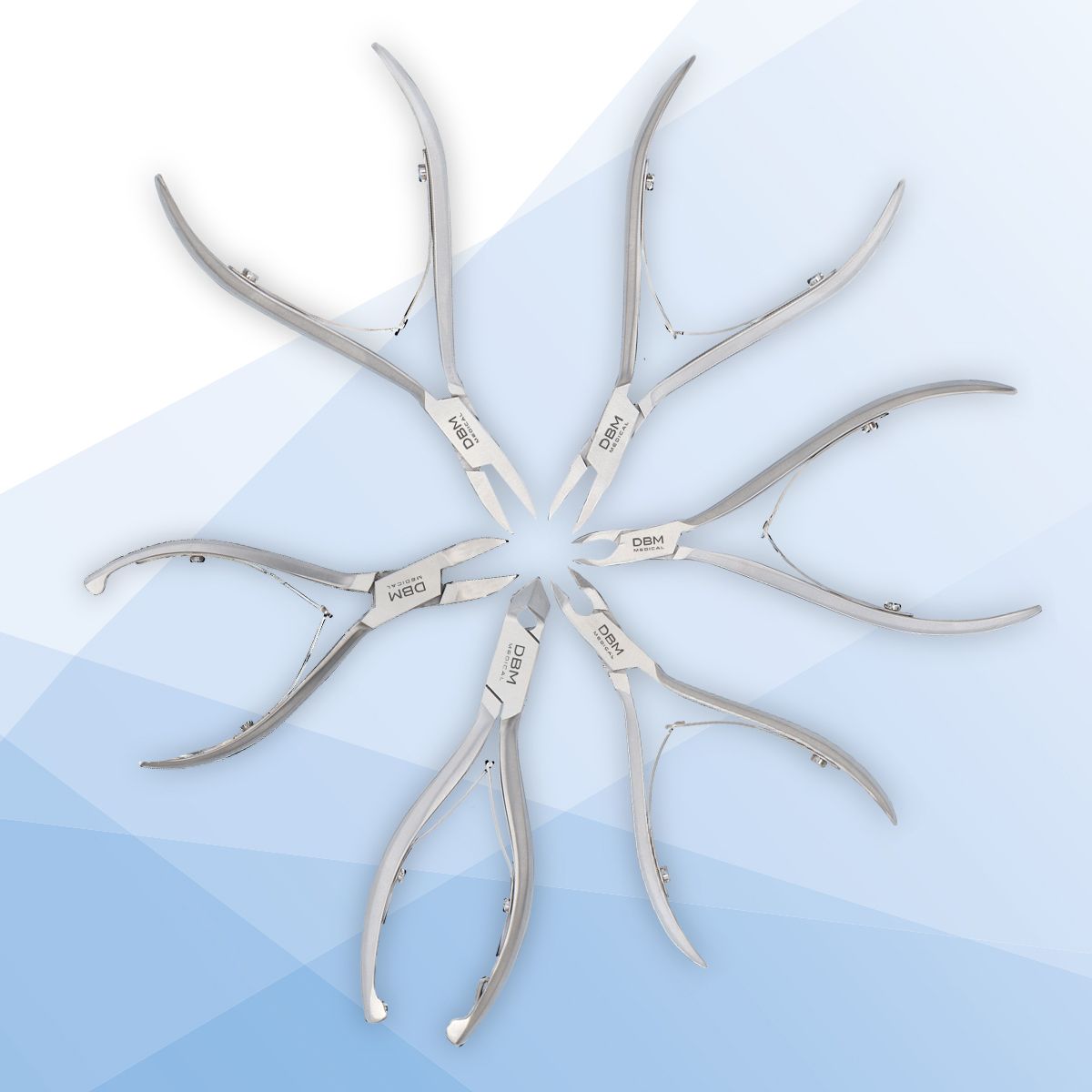 Outre les pinces, la gamme DBM Medical comprend également une série d'instruments de haute qualité indispensables pour les soins professionnels des pieds et des mains. Chaque instrument est fabriqué en acier inoxydable, durable, stérilisable et conçu avec le souci du détail et de la facilité d'utilisation.